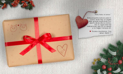 Este es el tan esperado regalo que te mencioné hace unos días. Estuve dudando mucho cómo entregarlo así que finalmente me decidí por esta forma. Como ves, es una cajita. Al lado de la cajita hay una pequeña nota, y en el casito de que no puedas leerla porque se ve borrosa, aquí diré lo que dice: "Por favor, sigue las instrucciones sin trampas, alfa malo"